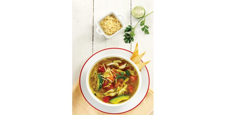 - Hidangkan sup dalam mangkuk, masukkan avokad, taburi daun ketumbar dan keju parut. Tambahkan tortilla. Sajikan selagi hangat.