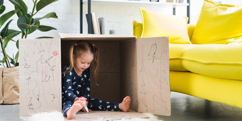 Manfaatkan kardus bekas TV, kulkas, air mineral, atau mie instan (tapi harus bersih ya, Ma) untuk dijadikan kereta api, mobil-mobilan, istana, rumah-rumahan, atau pesawat terbang.