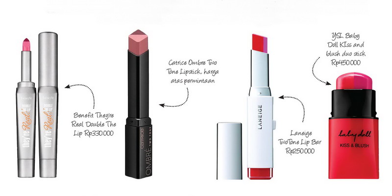Musim ini, lipstik dua warna sedang menjadi favorit. Gradasi warna atau ombre membuat wajah terlihat lebih segar.
