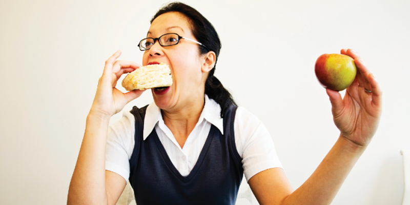Anda melewatkan waktu makan sehingga perut terlalu lama dalam keadaan kosong. Tubuh pun mengeluarkan hormon ghrelin yang memicu nafsu makan. Untuk mengganjal perut Anda jadi tak henti-hentinya mengunyah. Idealnya jangan biarkan perut kosong selama lebih dari 5 jam. Jadi kunyahlah camilan sehat di antara waktu makan.