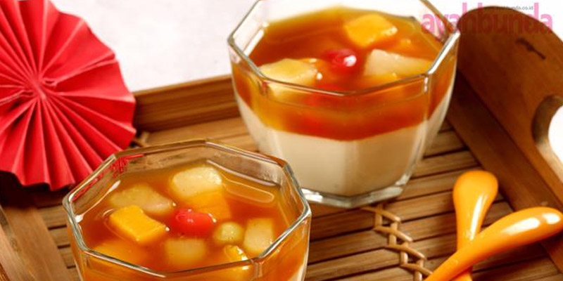1. Puding: Rebus tahu, air dan agar-agar sambil diaduk sampai mendidih.
